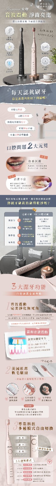 2分鐘前微笑從齒開始!Anqueen安晴臻至潔白智能音波電動牙刷AQ-B101 - 粉色款