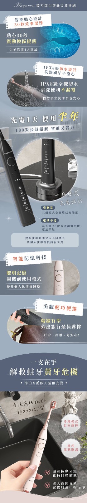 5分鐘前微笑從齒開始!Anqueen安晴臻至潔白智能音波電動牙刷AQ-B101 - 黑色款